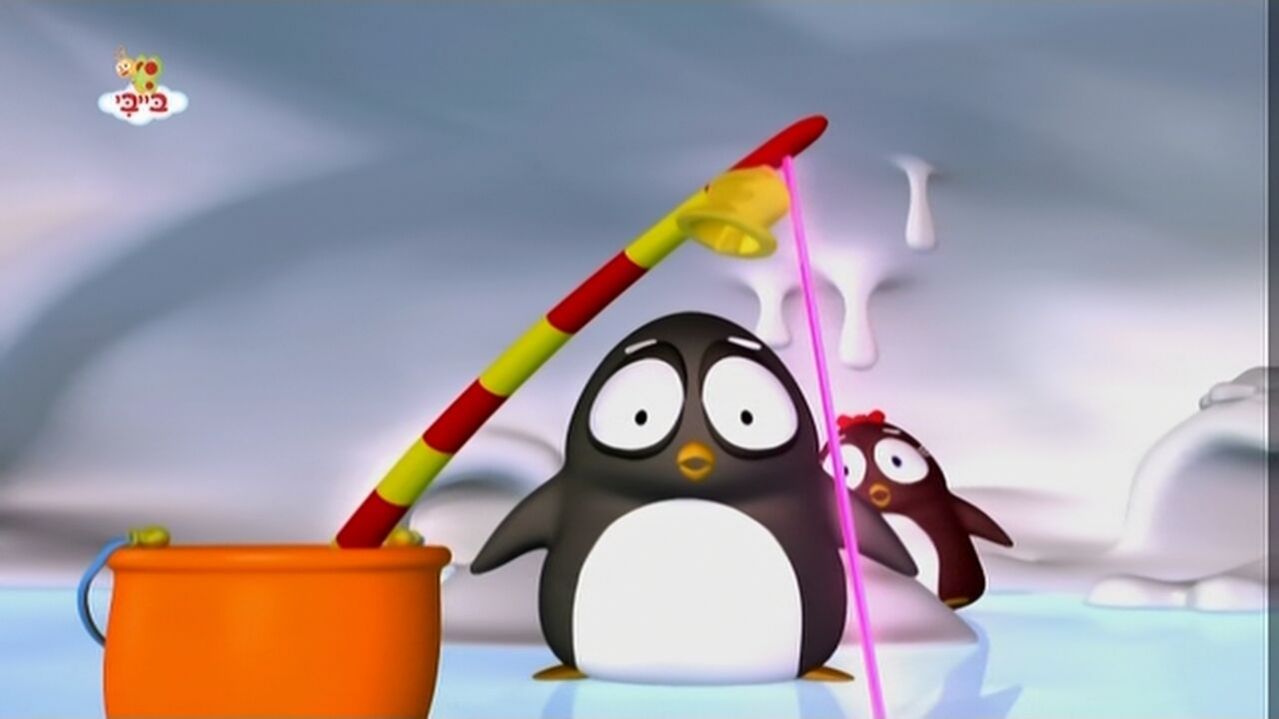 פים ופימבה - פרק 9 שני פינגווינים צעירים מפעילים את דמיונם כדי להעלות אפשרויות למשחק עם חפץ שהם מוצאים. לאחר מכן, הם משלבים את רעיונותיהם כדי לשחק בצוות. כ' עב'. מדובב. ש.ח.